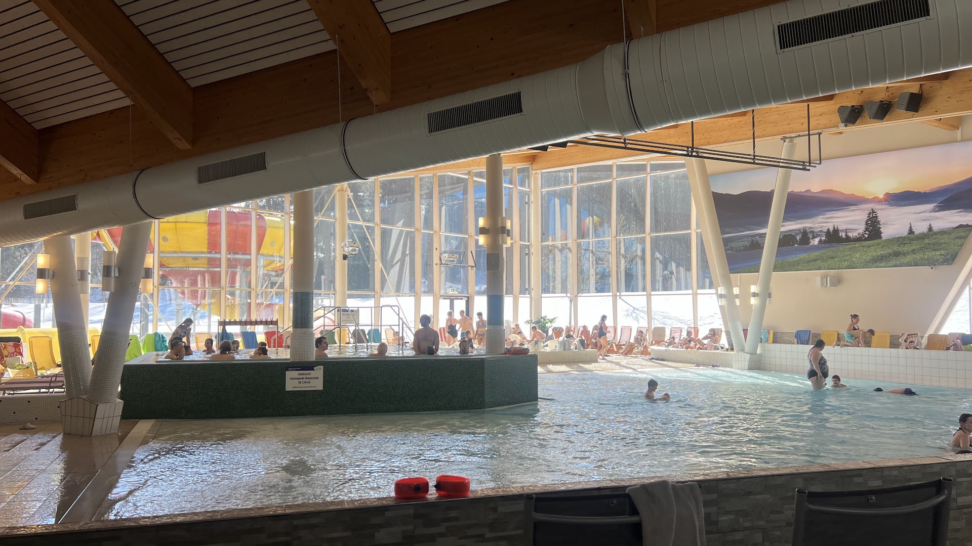 A few tips: • Bring your own sauna towel or kilt. • The sauna area is separate from the swimming pools and water slides. However, it has its own indoor and outdoor thermal pools, an indoor jacuzzi, a bar, and plenty of loungers for relaxation. • One important thing: swimwear is not allowed in this section. Don’t worry—even though it gets quite busy in the evenings during winter, the atmosphere remains friendly, natural, and discreet. -The entrance ticket to sauna for 4 hrs is 36€. You may also enter the water and swimming part.