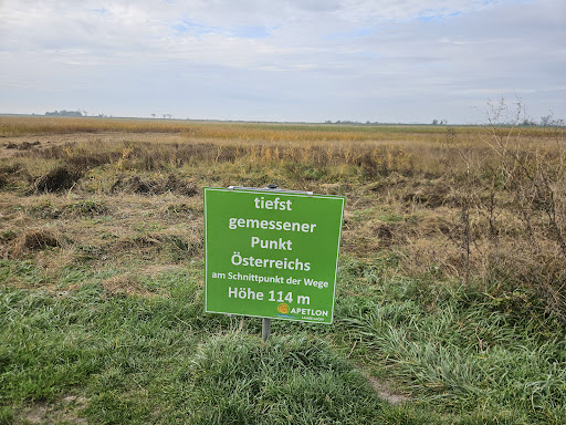 Ausgezeichnet! Zuerst war ich skeptisch ob sich ein Besuch denn wirklich auszahlt. Immerhinn gibt es dort ja sonst nichts zu sehen. Aber ich muss wirklich sagen: Für all Jene die sich einen Urlaub am Meer nicht leisten können... BESUCHEN sie den tiefsten Punkt Österreichs! Sie fühlen sich dem Meer dort schon deutlich näher als in einem randalpinen Becken oder einer Hügellandschaft... Immerhinn liegen ja 40% Österreichs bereits über 1000m Seehöhe und da die Gebirgszone ja auch mehr als zwei Drittel unseres Landes ausmacht zahlt sich so ein Besuch am tiefsten Punkt Österreichs schon wirklich aus. Ein positiver Punkt hierbei ist natürlich, dass der Weg dorthin stätig bergab geht ... es gibt ein schönes grünes Schild.... dass den Ort auch eindeutig markiert....Wer hat schon ein Selfie mit dem tiefsten punkt Österreichs besuchen Sie...