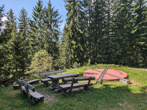 Eine kleine Wanderungen (ca 3,6km/200hm), kein großer Schwierigkeitsgrad, wenn man vom am nahgelegensten Parkplatz startet. Dieser kommt erst wenn man in Laastadt scharf rechts abbiegt und noch weiter fährt Richtung Geiger, die Strasse wird bis dahin gefühlt immer enger. Nicht beirren lassen, man kann auch schon von Arriach starten, zumindest ist dort auch schon ein Parkplatz ausgewiesen mit dem Hinweis "geografischer Mittelpunkt..." Die Wanderung führt über Wiesen, durch den Wald und hauptsächlich auf einem Forstweg entlang. Am Mittelpunkt angekommen findet man den berühmten Roten Punkt aus Beton in Übergröße mit den Koordinaten versehen vor. Am Ziel gibt es eine Webcam, die manuell gestartet werden muss, man hat genügend Zeit sich zu positionieren, ein Lichtsignal erscheint und signalisiert den Auslösemoment. Foto kann auf der Webseite heruntergeladen werden. Bänke und ein Tisch laden...