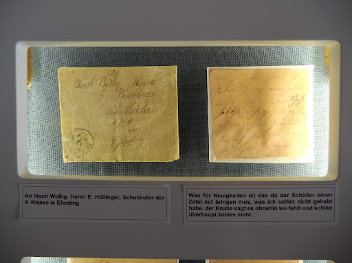 Ich war nun mit beiden Söhnen im Schulmuseum in Bad Leonfelden. Beide Male haben wir uns auch die sehr lebendige Führung gegönnt. Das Museum ist in einem mittelalterlichen Gebäude östlich der Kirche untergebracht. Der Trägerverein konnte es vor dem Abriss bewahren. Bei der Renovierung fand man eine Inschrift, die darauf hinweist, dass hier schon in der frühen Neuzeit Knaben unterrichtet wurden. Die Sammlung zeigt den Wandel des Unterrichts von Klosterschulen des Mittelalters bis heute auf. Sehr schön und anschaulich. Es gibt eine alte Schulklasse, in der man sitzen kann und versuchen, mit einem Griffel Sütterlinschrift zu schreiben. Man kann auch Schulfilme aus den 1930er bis in die 1960er Jahre schauen. Auch die drakonischen Strafen alter Zeiten werden gezeigt. Die Büchersammlung dient als Quelle für akademische Abschlussarbeiten. Und in einem kleinen Museumsshop kann man verschiedene Souvenirs erwerben, z.B. Tafel und Griffel, Filme, aber auch Lebkuchen und...