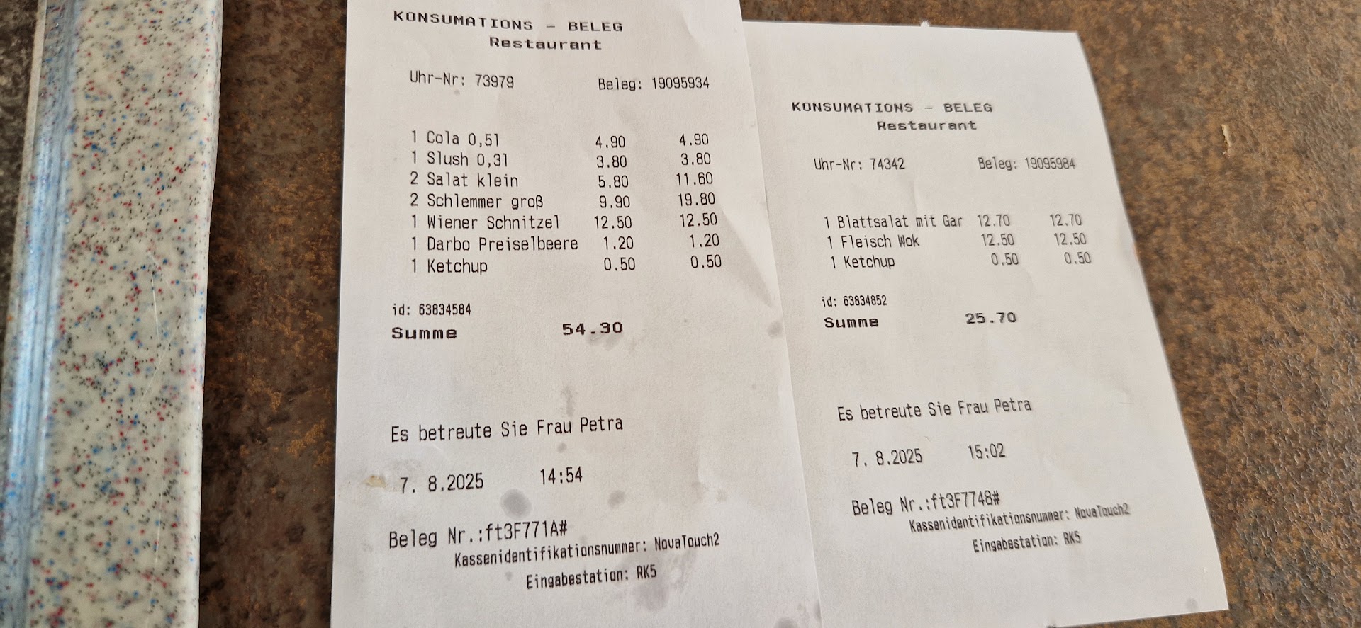 Als wir kurz nach 20:00 Uhr das Bad verlassen wollten, fragte ich die Mitarbeiterinnen im Kassenbereich, wo wir unsere gemieteten Bademäntel hinlegen sollten. Uns wurde eine Box gezeigt, und dort legte ich sie hinein. Die Mitarbeiterin bei der Kassa des Ladens, welche nur wenige Meter entfernt saß, rechnete unsere Armbänder ab. Da mir die Summe zu hoch vorkam, prüfte ich die Positionen auf dem Beleg und stellte fest, dass mir die Bademäntelkaution von 50€ verrechnet wurde. Nachdem ich die Mitarbeiterin darauf hingewiesen hatte, gab sie mir die 50 Euro sofort zurück. Hätte ich nicht selbst die Initiative ergriffen und die Rechnung kontrolliert, wären mir die 50 Euro verrechnet worden. Das muss doch im Service inbegriffen sein, dass Mitarbeiter solche Positionen genau überprüfen und fragen, was mit den Bademänteln ist – zumal ich die Bademäntel vor ihren Augen zurückgebracht hatte.