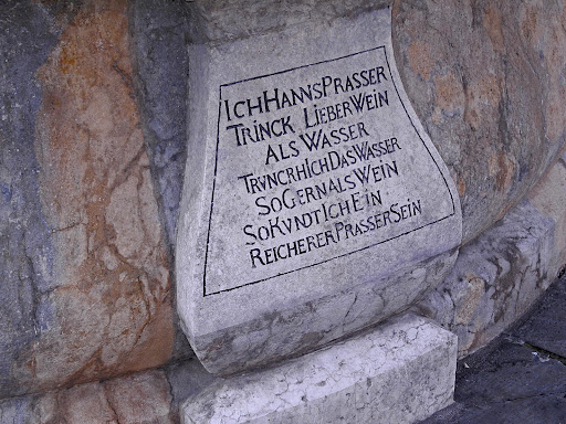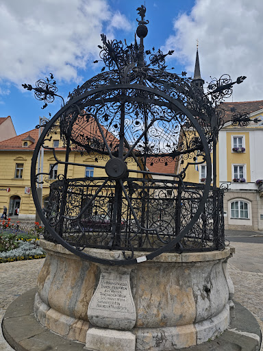 Bruck főterén álló kovácsoltvas kút ,egy igazi műremek. Gyönyörű kiképzésű, szépen felújított. Kár, hogy nincs mi is kút funkciója, vagy legalább valami víz benne. Ausztria egyik legjelentősebb ilyen műemléke. Az 1600-as évek első felében készült, a talapzatán lévő tábla tanulsága szerint 1626-ban. A kő talapzat többi táblájától megtudjuk, hogy egy bizonyos Hans Prasser szívesebben iszik bort, mint vizet (meg tudom érteni), ráadásul a bor még jó étvágyat is ad neki. Valamint, hogy valahova el is ásott egy kis ingyen itókát, ha nincs pénzünk borra. Nem álltunk neki felásni a teret, inkább betértünk a téren egy remek...