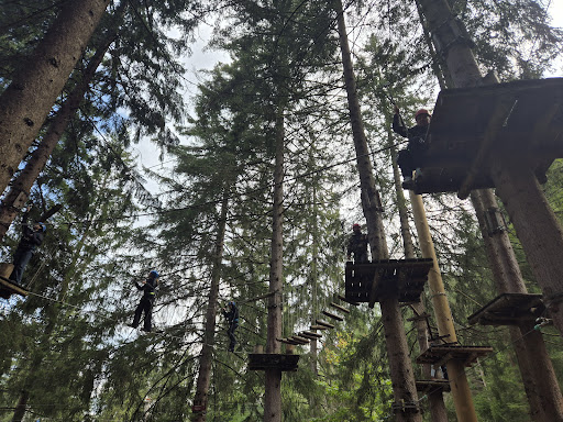 Read moreSehr gepflegter Hochseilkletterpark mit in den Alpen. Wir haben eine sehr ausführliche Einweisung bekommen und fühlten uns auch so sehr gut aufgehoben. Die Parcoure s8nd unterteilt in vier Schwierigkeitsgrade gelb Anfänger, blau Fortgeschrittene, rot Profis und schwarz für extrem. Es gibt dort sehr viel unterschiedliche Hindernisse die überwunden werden müssen und auch eine große Anzahl an Seilrutschen. Es gibt keine Zeitbeschränkung man kann den ganzen Tag klettern und Pausen machen wie man will. Somit geht der Preis von 61 Euro für mich und meine Tochter vollkommen in Ordnung. Im Kletterpark gibt es ein Restaurant wo man Getränke und warme Speisen, sowie Kuchen und Eis bestellen kann. Auch die Bedienung war sehr freundlich und zuvorkommend. Ich kann den Kletterpark nur...