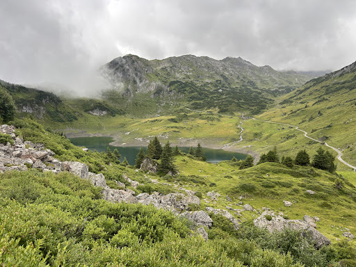 Lago alpino en mi opinión especial sobre todo por el entorno que atraviesas hasta llegar a él, que combina montañas, praderas con río que la cruza , caballos , vacas…y bosque. Hay un autobús que te lleva hasta el inicio del lago , donde hay un pequeño parking, o por supuesto se puede ir andando o en bici (alquilan bicis en varias tiendas en Lech). A partir de las 16:30 se puede entrar con coche particular pagando la tasa correspondiente. La ruta alrededor del lago es circular , una parte es sendero ancho de grava sin dificultad y prácticamente llano pero OJO… la otra parte de esta ruta transcurre por el acantilado a través de un sendero estrecho (en fila de uno) y tiene cierta dificultad sobre todo con niños pequeños o personas no acostumbradas a caminar o con vértigo . Si se quiere evitar esta parte , sin problema se puede deshacer el camino. A los que estéis acostumbrados a caminar…es una aventura a...