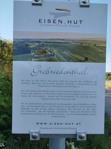 Ca. 15. Minuten mit dem Fahrrad von Großriedenthal (gut beschildert) befindet sich diese fantastische moderne Aussichtsplattform inmitten der Weinberge. Bei gutem Wetter sieht man im Osten bis zum Stockerauer Kirchturm und zur Burg Kreuzenstein (Leobendorf). Entlang des Donautals sieht man von Zwentendorf bis Korneuburg. Im Süden wunderbarer Blick bis zum Schneeberg. Nicht so ortskundige werden dabei von einem fix montiertem Ferngläser unterstützt. Für ein Picknick empfiehlt es sich von den vielen nahe gelegenen Winzer im Ort etwas mit zu bringen. TIP.: Für ihr Picknick in den Weingärten vermietet Biowinzer Josef Bauer E-Bikes mit Aussattung. Damit ist ein unvergesslicher...