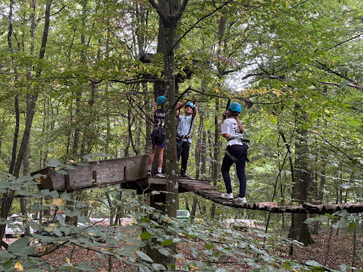 Relaxation, communication and enjoying nature are in the foreground.This rustic forest climbing garden is stretched between old, strong oak trees .
