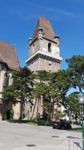 Read moreHeuer feiert man 500 Jahre Jubiläum des 60 m hohen frei stehenden Wehrturmes. Entsprechend dazu gibt es ein Festprogramm und spezielle Führungen. Der Turm vereinigt sakrale und profane Funktionen für die Marktgemeinde als Wehrturm und Wachturm, als Kirch- und Glockenturm, als Stadtturm mit Turmuhr und ist das Wahrzeichen. Der Wehrturm gilt als Meisterwerk spätmittelalterlicher Festungsbaukunst (1450-1521). Unter dem Turm befindet sich eine Brunnenstube mit einem Brunnen in der Tiefe. Eine schmale Wendeltreppe führt von der Kapelle in die oberen Räume. Es gibt auch ein kleines Sakralmuseum und eine eigene archäologische Abteilung. Eintreten kann man von der Westseite. Man durchquert die sogenannte Nikolauskapelle und kann den Grabstein und die Gedenkstätte von Thomas-Ebendorfer besichtigen. Ebendorfer, genannt Thomas von Haselbach (* 10. August 1388 in Haselbach bei Stockerau, Herzogtum Österreich; † 12. Januar 1464 in Wien) war ein österreichischer Theologe, Universitätsprofessor und Geschichtsschreiber, der in Perchtoldsdorf die letzte Ruhe fand. Die 1524 eingerichtete ehemalige Türmerstube („Wachter Stübel“) wurde 1973 zu einem Ortsgeschichte-Museum ausgebaut. Von der Galerie hat man einen überwältigenden Blick auf das Wiener Becken und...