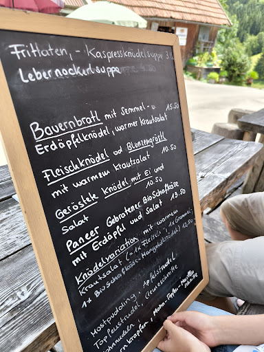 Besonders empfehlenswert ist das fĂŒr die Region typische Bauernbratl. Es ist gut gewĂŒrzt, mit Knoblauch verfeinert und wird klassisch mit Knödeln und Kraut serviert. Bei unserem Besuch haben wir uns fĂŒr die âJausenâ-Variante entschieden â ein lauwarmes Bratl mit Kren, Krautsalat, Senf und frischem Bauernbrot. Eine leichte und schmackhafte Option, gerade an warmen Tagen.