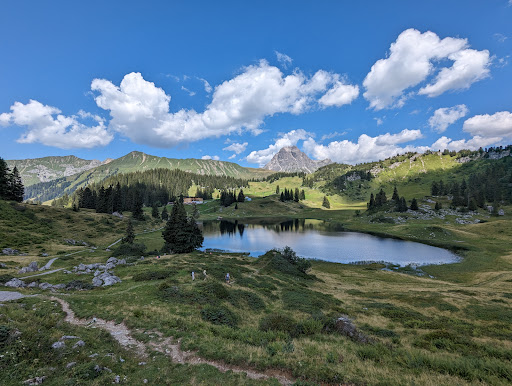 Von Schröcken aus wandert man ca. 1 Stunde bis zum See. Am Seeufer befindet sich ein hervorragendes Restaurant, wo man auch gut essen kann.