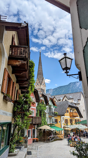 Hallstatt Marktplatz, also known as Hallstatt Marketplace, is a charming and picturesque square located in the heart of the village of Hallstatt, Austria. The Hallstatt Marktplatz is a delightful and idyllic square that perfectly embodies the essence of this Alpine village. Surrounded by traditional Alpine-style buildings adorned with colorful facades, the square exudes a quaint and charming atmosphere that instantly captivates visitors. The Marktplatz serves as a central gathering place for locals and tourists alike. It offers a variety of amenities, including cozy cafes, restaurants, and shops selling local crafts and souvenirs. What makes the Hallstatt Marktplatz truly special is its location right by the shimmering Hallstätter See (Lake Hallstatt). This proximity allows for breathtaking views of the lake and the surrounding mountains, adding a scenic backdrop to the square. The combination of the stunning natural beauty and the traditional architecture creates a truly enchanting atmosphere. The Marktplatz is also a great starting point for further exploration of Hallstatt. From here, you can wander through the charming streets, discover hidden alleys, and admire the traditional houses adorned with flowers and intricate details. The square's central location makes it easy to access other notable attractions, such as the Hallstatt Bone House and the Hallstatt Museum. While the Hallstatt Marktplatz can get busy, especially during peak tourist seasons, it retains its charm and authentic feel. It's a great place to relax, people-watch, and soak up the unique ambiance of this picturesque village. Whether you're seeking a leisurely stroll, a tasty meal, or a place to rest and take in the beauty of Hallstatt, the Marktplatz offers a delightful experience for visitors of all ages. Overall, the Hallstatt Marktplatz is a must-visit