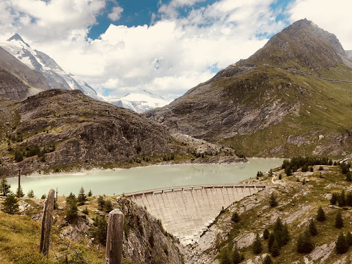 Two dams in the Marga Gorge near the former terminal of the Pasterze Glacier. The glacier melt waters fill the lake that provides water for the hydroelectric plant...