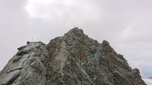 To make it clear right away, the three stars are not for the mountain itself which is incredibly beautiful. They are for the overall experience which was tainted by the congestion, peoples' behavior, and trail safety which is inadequate in view of the mass traffic. Most other reviews won't prepare you for what to really expect, so let me give you a glimpse. We did this hike with a friend at the end of June 2025. From the Adlersruhe hut, the trail crosses a moderately steep snow field. The introductory via ferrata ends in a steep rock section where the trail is poorly marked. We were not the only ones pondering which way to go up. Apparently, we scrambled a bit too much to the right, because we ended up climbing through bare rock and pristine snow and ice. Being experienced climbers, this was not a big deal, and we even enjoyed it. But adding a few trail markers at the end of the first via ferrata would certainly help. More importantly, the trail is mostly steep, narrow, and exposed, and there are numerous bottlenecks that cause congestion on a regular basis. We witnessed people being rude, reckless, and even outright dangerous. Be ready for a constant stream of hikers coming at you from the opposite direction, unwilling to slow down. If you want to take a picture, people behind you will try to pass you instantly. We were yelled at (in Polish) for taking some 10 seconds to snap a photo. The trail itself is rather poorly secured. This would not be a problem if there were fewer people, as the whole stress is caused by the heavy traffic. With a few exceptions, there are no fixed ropes. Instead, there are steel poles, perhaps 1 - 1.5 meters tall, located some 10-20 meters apart. At one moment, I was anchored with a sling to one of them with eight (8) other people. Some going up, some going down, everybody anxious to go. One lady disconnected herself from the safety pole and started climbing up away from the official route with no protection. I witnessed several guided groups where the customers went down steep exposed sections, followed by a guide who was at the end of their rope, unprotected. He would not be able to arrest anybody if they slipped and fell. Safety is overrated. I seriously wonder how the reported number of deaths on the Grossglockner is only 2 per year, as this is a disaster in waiting. On the way down, we sometimes chose to lower ourselves on the miscellaneous bolts to circumvent the heavy traffic and for...