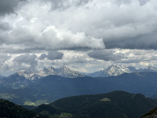 Hier gibt einen herrlichen Rundwanderweg weit über der Baumgrenze. Die Zufahrt erflolgt über Hohentauern. Gestartet wird auf 1663m vom Parkplatz der Edelrautehütte. Gleich neben dem Gasthaus liegt der Scheibelsee. Und dann gehts gleich bergauf. 785 Höhenmeter bis zu Gipfel des Großen Bösenstein. Nur kurze Stücke sind zwischendurch drinnen wo es halbwegs eben dahingeht. Die letzten 20 Minuten wird’s sehr felsig und man braucht schon öfters die Hände zu Hilfe um sicher durch den Fels zu (schon fast klettern) kommen. Doch der Rundblick vom Gipfel lässt alle Mühen vergessen. Hier wäre eine Tafel mit den Namen der umliegenden Berge hilfreich. Markant Richtung Nordwest ist der Grimming und der Dachstein mit den Gletscherflächen. Der Rundweg führt nun über den 2395 Meter hohen kleinen Bösenstein zum großen Hengst mit auch noch mal 2156 m. Auch der Wege über den kleinen Bösenstein erfordert Trittsicherheit. Über die 2 Gipfel ist es kein normales Bergwandern mehr. Man sollte auch auf das Wetter achten. Denn es gibt fast keinen Windschutz. Und wenn über 2000 Meter der Nebel einfällt wird’s sicher nicht mehr lustig. Beschrieben wird die Tour mit 5 – 6 Stunden Gehzeit und insgesamt 920 Höhenmeter. Wir waren mit viereinhalb Stunden recht flott unterwegs. Und das bei Sommertemperaturen...