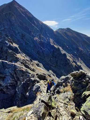 sehr(!) kraxlerig und ausgesetzt über Drei-Stecken-Grat und Gamsscharte übers Ochsenjoch. Am Foto: Mitten im Dreisteckengrat. (schwer)