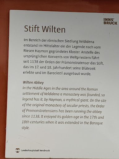 🕰️ Historia: • Uważane za jedno z najstarszych miejsc sakralnych Tyrolu – według tradycji, pierwsza kaplica istniała tu już w czasach rzymskich, w pobliżu obozu wojskowego Veldidena (dzisiejszy Wilten). • Około 1138 roku powstało tu opactwo premonstratensów (zakon założony przez św. Norberta w Prémontré we Francji), sprowadzonych przez biskupa Brixen. • Od średniowiecza pełni funkcję centrum duchowego, edukacyjnego i kulturowego w Tyrolu.