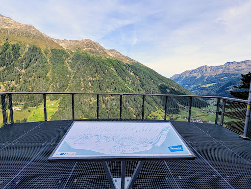 Die Plattform ragt über den Fels hinaus und vermittelt das Gefühl, über den Bergen zu schweben – ein echtes Highlight für Fotoliebhaber und Naturliebhaber gleichermaßen. Besonders beeindruckend ist der Blick auf das Kaunertal und die umliegenden Gipfel, die im Winter von einer glitzernden Schneedecke...
