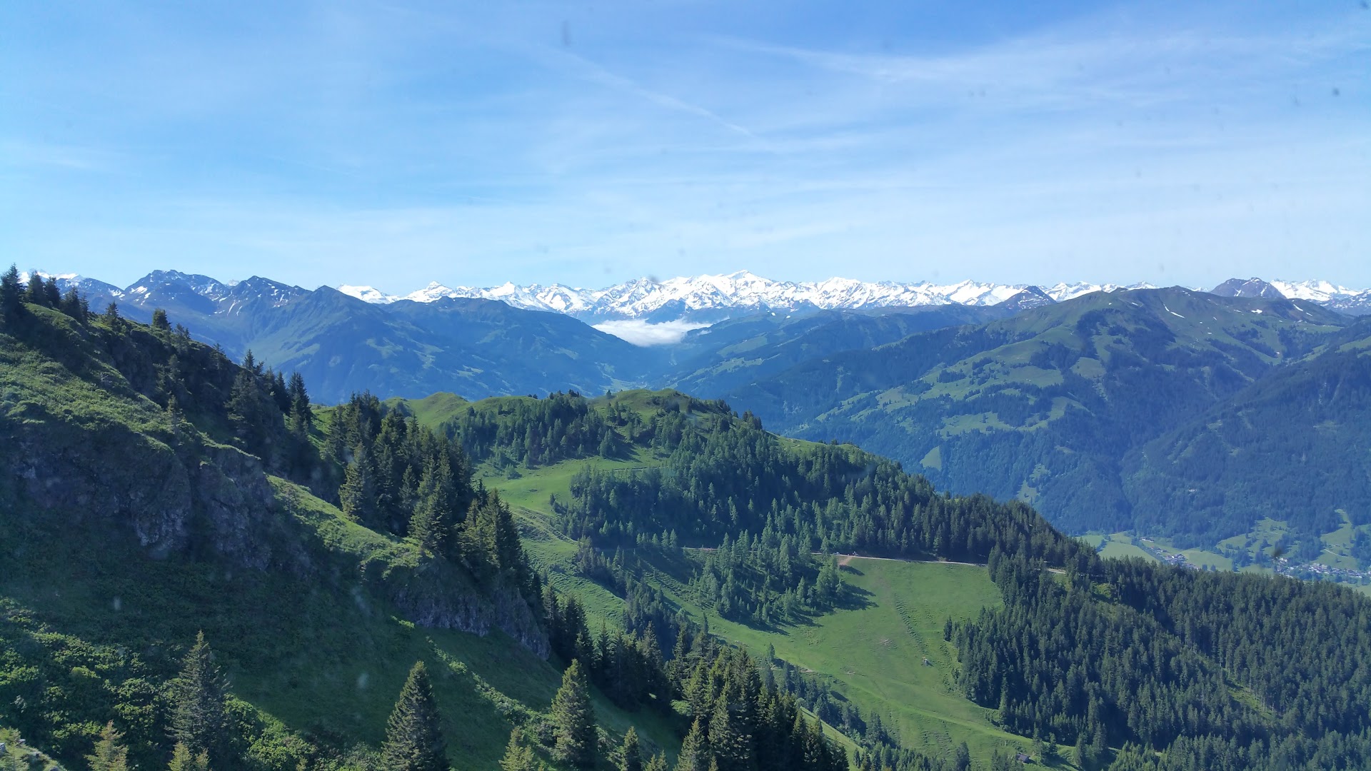 You can take the cable car up to the mountain from here. If you are not skiing it will only cost 28 euros per person for the up and down trip. Ski rates are available from 56 euros per person per day onwards. First the cable car will stop at the middle station. If you want you can get down here and walk around. Also there are hiking trails from here to the top of mountains. Also there's another cable car starting from here which goes to the peak of the kitzbuhler horn. Or else you can stay in the cable car and climb further upwards to the alphenhause. The views all around are...