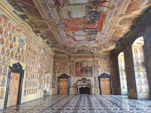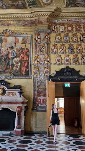 The Great Arms Hall has a collection of 665 Coats of Arms of Carinthian Estates from princes, noble families and clergy of the 18th century painted on the walls. The artist Josef Ferdinand Fromiller painted them in the late Baroque style between 1735 and 1740.