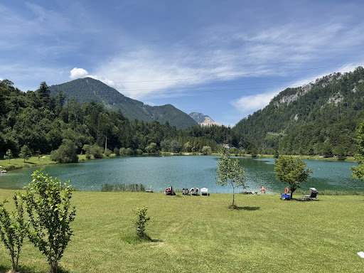 Read moreCamping Obermayer/ Elisabethsee Leuke, kleine (door)reiscamping. Vriendelijke mensen. Een klein gedeelte voor kampeerders, verder veel chalets met vaste gasten. Prima sanitair, stroompunten en drinkwaterpunt vlakbij. Vooraan bij de slagboom staat een blokhut waar je je kan melden, daar staat ook een automaat met drinken en snacks. Als daar niemand is, even doorlopen naar de bar/restaurant. Daar kan je prima een pizza of schnitzel eten. De keuken is tot 20 uur open. Het zwemmeer is heerlijk, veel gras eromheen, een vlot in midden en speeltuintjes. Prachtige natuur eromheen. Wij hebben hier één nacht geslapen, omdat we op doorreis zijn. We hadden ons hier prima 2 a 3 dagen kunnen vermaken. (Met mooi weer) Wij hebben niet gereserveerd van tevoren, er was nog plek. Mocht het vol zijn, dan is er buiten de slagboom ook nog voldoende plek om een nachtje te slapen met je caravan, tent of camper. Er kan daar ook stroom voor je...