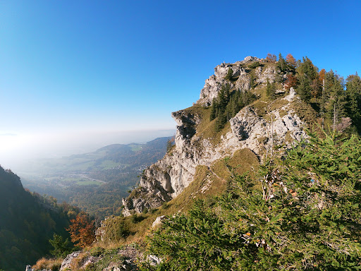 Read moreDieser Berg ist leider Gottes mit Menschen völlig überlaufen. Amerikaner, Deutsche, Niederländer und andere Nationen tummeln sich da oben. Ich bin, als ich oben war auch etwas barfuß geklettert. Dabei ist mir aufgefallen, wie extrem brüchig die Steine sind. Ein Grund warum in Gipfelnähe so viele kleine Steine herumliegen. Zum Klettern ist deshalb der Nockstein hochgefährlich und nicht zum Empfehlen. Für Kinder und Erwachsene ohne Klettererfahrungen ist es notwendig auf dem Weg zu bleiben. Ich bin über die Schlucht runtergegangen. Einmal sogar im Finstern und ohne Licht. Ich habe mir eigentlich nicht viel dabei gedacht, da ich das oft auf andere Berge mache, aber bin dann über viele umgefallenen Bäume geklettert. Der Weg verlor sich. Ich werde noch einmal diesen Weg runtergehen und sehen, ob es nicht noch eine andere Möglichkeit gibt die Schlucht in Richtung Guggenthaler Kirche...