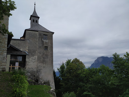 It's rather a steep path up to the castle, but worthwhile. There are very nice views of the surrounding mountains and village. The small church is to the left with the hermit 's home. The 33 spiral steps lead to a crèche. On the right the staircase goes up to the tower. There are nice flowerbeds...