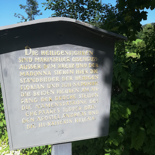 Read moreStojí za zastavení. Postaven v roce 1855 a vyzdoben sochami z litiny z Mariazell, představující patrony Töpperů - svatou císařovnu Helenu, apoštola Ondřeje, svatého Jana Nepomuckého a svatého Floriána a dále se na něm nalézá kříž a Madona. V roce 1861 se most zřítil v ničivé bouři a musel být přestavěn. Nové sochy světců byly...