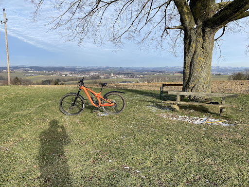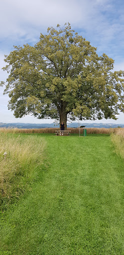 Die Marbacher Linde ist ein ganz besonderer Platz, an dem man gerne länger bleibt. Der atemberaubende Rundumblick ins Mühlviertel und die beeindruckende Alpenkette im Süden machen den Aufenthalt hier zu einem echten Erlebnis. Der Blick reicht ebenso auf die Gedenkstätte des ehemaligen KZs.