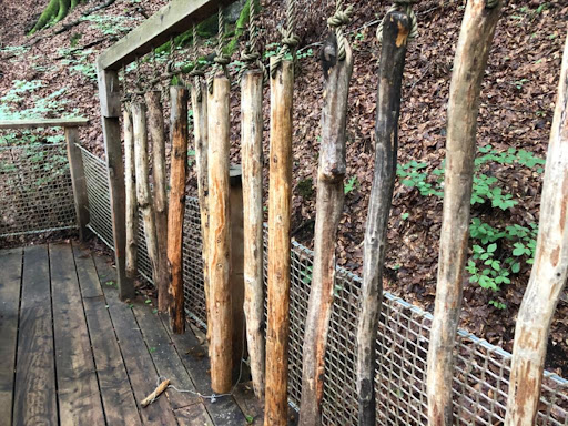 On the positive side the jumping/sliding net area on the top left is fun for kids that just want to walk and jump on a giant see-through net above the forest floor. Unfortunately for adults the knots in the netting as you walk through in your sock feet will hurt!.