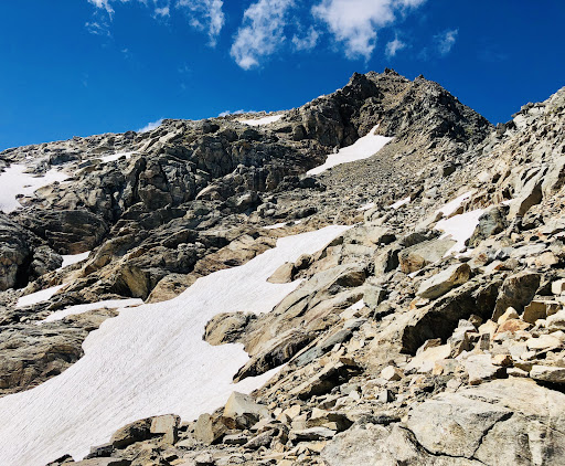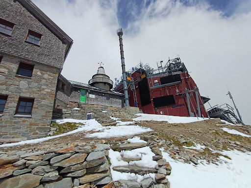 Das Panorama vom Zittelhaus ist beeindruckend. Wer von der Rojacher Hütte dort hinauf steigt, sollte ca. 100 Höhenmeter über der Hütte westlich über den unteren Schneehang in die gut sichtbaren gelbbraunen Felsen queren (Skistöcke‼️) und ohne Schotter und Steinschlag sicher das Ziel erreichen. Der Schneehang verbreitert sich nach oben und gibt nach ca. 1 Stunde den Blick auf Hütte und Observatorium frei - Rückweg genau wie...