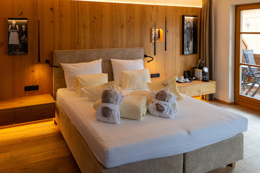 Read moreEin schönes hotel, besser als auf der Homepage.. . Mit besonderen Kleinigkeiten positiv, wie negativ. +liebevolle, herzliche Kinderbetreuung mit lucie, Es ist oft Programm, an dem man ungezwungen mitmachen kann und genug Zeit für Kinder für Freispiel. Orientierung ist der Bauernhof und die Region und nichts künstliches inszeniertes. Die meiste Freude bereitet den Kids wohl der Hof mit den Fahrzeugen, und dem doch begehrten Sandspielhaus +das kleine Zimmer Bergaussicht ist der Hammer. Super modern, gemütlich und Sicht zum spielhof. Für uns viel schöner als ein Familienzimmer, das wir im. Anschluss testeten) +das ganze hotelgrundstück ist mit Geschmack, naturnah gestaltet, für Kinder gibt es viel zu spielen, aber keine Bespaßungsanalage, fand ich prima +ponyreiten ist wie alle Angebote unkompliziert. Wer da ist, macht mit. zum Abendessen ist stilles Wasser inklusive +ich habe noch nie so ein sauberes hotel gesehen, selbst die außenanlage, die ja Teil des Bauernhof ist, ist super sauber, nichts riecht nach Bauernhof, außer das frische heu +toller spielgarten und Sitzgelegenheiten, auch sehr sauber, (habe nie einen Hausmeister o. Ä. Gesehen) +man kann ohne Auto und selbst gekaufte Lebensmittel gut 1-2 Wochen verbringen und jeden Tag etwas tolles erleben, schon allein weil mit der jokercard alle gondeln mit im. Preis sind, auch mit bike +die familiemangebote auf der Alm sind super, genauso wie kinderyoga und der Mutweg. Muss man mitmachen. +Sauna wird individuell vorbereitet, mit Kerzen und Tamtam. Richtiges Wellnessfeeling ganz allein (corona) +/- der Koch ist sehr ambitioniert und kreiert abends extravantes Essen... Mir persönlich ist es eine Nummer zu abgehoben. Blöder Nebeneffekt ist, dass ich als Frau nicht satt wurde und dass das Abendessen sehr lang dauert. Unter 1,5h sind wir nicht raus, was mit Kindern schon zu Belastungsprobe werden kann leider waren die Angestellten im Hotel sehr zurückhaltend und wortkarg. Es kam kaum ein netter Satz über die Lippen(außer das nötigste) macht einen blöden Eindruck, wo doch das hotel genial ist) Ein "hatten Sie einen schönen Tag" oder" ist alles in Ordnung " wertet den...