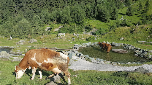 Der Spielplatz ist z.T. aber schon großer Schrott. Naturgemäß schön und gut, aber funktionsfähig sollte das Gerät schon sein. Zusätzlich leider alles voller Kuhfladen, dass man die Kinder nicht frei laufen lassen konnte. Und dann dafür noch 6€ pro Person zu verlangen finde ich schon überteuert.