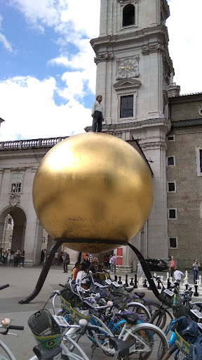 Read moreLocated in Kapitelplatz in the old town of Salzburg is this sculpture by Stephan Balkenhol. Bascailly it's a giant golden orb atop which stands a man. ThNeither the sculpture of the orb of the man is that interesting. The featureless exterior of the orb make it quite boring to look at. The sculpture of the man looks like something of out an papier-mâché experiment of an art class.