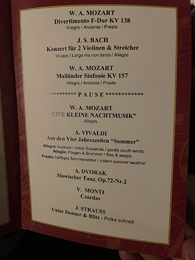As for the performance itself, it was unfortunately underwhelming. The musicians made frequent mistakes, and the overall quality of the playing did not meet the expectations one would reasonably have for a concert in Salzburg.