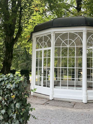 It's the gazebo from the American movie The Sound of Music, specifically appearing in the scene where the girl sings about being "16 going on 17" with a boy who turns out to be a literal Nazi. It's neat, I guess, especially if you're a fan of the movie. You're not allowed inside it; I was told on my first visit that they stopped allowing it because people kept falling through the glass trying to replicate the scene.