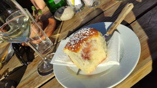 Der Buschenschank mit dem herrlich bewachsenen Laubengarten ist eine Besonderheit unter den Weingütern in der Region. Das große gepflegte Biedermeier Herrenhaus mit dem geschwungenen Treppenaufgang beeindruckt den Besucher ebenso wie das historische Presshaus und den vollständig bewachsenen Kellerbetrieb. Daneben gibt es eine moderne Vinothek, in der die vielfach ausgezeichneten Weine verkostet und gekauft werden können. In den stilvollen Gaststuben werden neben typischen Jausen feine Spezialitäten und Eigenbau-Weine von bester Qualität angeboten. Uns hat die feine Edelfisch-Sülze mit Salat sehr gut geschmeckt. Der Buschenschank des Weingut Felberjörgl gehört definitiv zu den herausragenden Lokalen im Weinland, deren Besuch Sie keinesfalls...