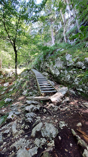 Read moreTolle leichtere Wanderung, die nicht lange Dauert und die man sehr gut für ein aktives halb Tagesprogramm einbinden kann. Wir fanden die Wanderung nicht all zu schwer, sie ist auch zu 90% im Schatten was sie besonders an heißen Tagen sehr attraktiv macht, mann kann sich danach mit einer Abkühlung im See belohnen. Wir sind sie natürlich mit Wanderschuhen gegangen und mit Kindern muss man aber schon dazusagen dass es nicht ganz ungefährlich ist, wenn die Steine nass sind. Die Aussicht dort oben ist einfach wunderschön und man kann selbstmitgebrachte Brotzeit oben auf der Bank genießen. Weiterer Vorteil, man kann im Ort für vier Stunden kostenlos parken, die reichen völlig aus, mit Kindern muss man natürlich mehr Zeit einplanen - es bieten sich nämlich am Rundweg einige Stellen für eine Rast und Spiele...