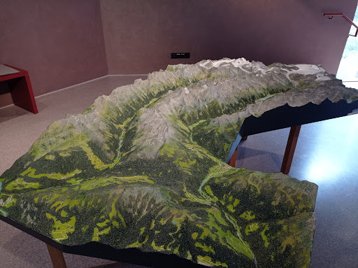 There are furthermore three buildings to visit: the main building with lots of valley culture over two floors (great to be able hear so many recorded interviews/stories about valley life and valley people) plus local geology and fauna, a heimat style house, and a new build house to learn all about local animals via taxidermy animals plus fun interactive displays and also a darkened room with touch-driven highlighting of local animals. The reception of the main building also functions as the centre shop with lots of great souvenirs and local produce.