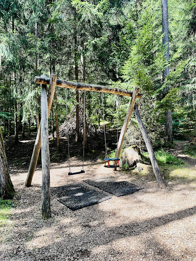 Als Highlight wartet mitten im Wald ein richtig schöner Spielplatz mit Klettergerüst, Schaukeln und Wippe. Zum Abschluss gibt es im Ort, gleich bei der Schule, noch eine Wackelbrücke und eine Rutsche – ein toller Ausklang nach der Runde.