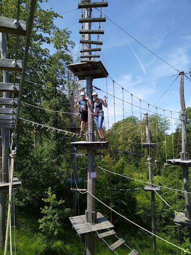 Read moreDer Hochseilgarten ist in Ordnung und einen Besuch wert. 7 verschiedene Routen in unterschiedlichen Höhen. Unsere Kids waren zwischen 9 und 11 und haben alle geschafft. Der Park ist sicher und man wird gut eingeschult. Ein Guide ist immer in der Nähe um weiterzuhelfen bzw zur Not weiterzuhelfen wenn man wo hängt oder einem die Kraft ausgeht. An diesem Tag war es sehr heiß. Da der gesamte Bereich fast ausschließlich in der Sonne liegt, war es schon eine schweißtreibende Angelegenheit. Das einzig Negative ist, dass man die Sicherung bei jedem Einstieg für jede Person mit ziemlich viel Kraftaufwand herunter- und raufziehen muss. Das hat bei den Erwachsenen einige Blasen an den Handinnenflächen hinterlassen. Das hatten wir bislang bei noch keinem Park. Empfehlung: Radfahrhandschuhe anziehen! Ansonsten aber alles top. Saubere WC Anlagen und Getränke/Eis vorhanden. Nebenan ist ein Gasthaus - hatte aber bei uns gerade urlaubsbedingt...