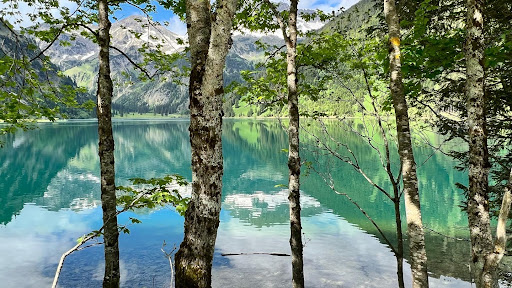 Read moreSuper See. Idyllisches Fleckchen Erde mit einer Lokalität direkt am See gelegen, samt Bootsverleih. Man sollte beachten, dass eine Durchfahrt mit Auto nur bis 8 Uhr morgens oder nach 17:00 möglich ist. Dazwischen ist entweder Bus oder der Visalpsee Express (eine kleine Bimmelbahn mit Anhängern) angesagt. Wer früh genug da ist findet Parkplätze, danach ist Suchen angesagt. Wir haben bei Schmieden geparkt, Kosten 5 Euro/Tag. Das ist ok. Danach bin ich mit Junior und seinem 3 Rad die ca. 4 km zu Fuß die Visalpseestrasse gelaufen. Das geht super, da asphaltiert. Bis zum See braucht man dann ca. 40 Min. Danach kann man sogar mit Birkenstockschlappen relativ gut samt Dreirad den Weg am See entlanglaufen. (auch wenn man von den Profis einige mitleidige Blicke erntet, aber wir waren ja zum Spaß und nicht zum Dauer Hiken da). Die Aussicht ist klasse. Ganz rum haben wir es nicht geschafft, mit einem 2 Jährigen zählt da auch was anderes. Zurück zum Lokal ging’s mit dem Alpenexpress zurück. Ein Spaß für den Kleinen und für Papa mal ein wenig Ruhe. Der Ausflug hat sich...