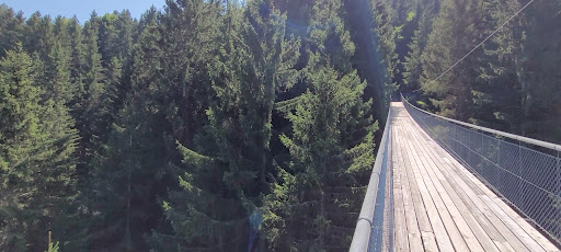Read moreDopo la bellissima diga di Malta,essendo sulla nostra strada decidiamo di visitare questo "parco" . All'ingresso mostriamo la nostra Karnten Card e la ragazza ci avvisa che c'è un "pulmino" (trattore con rimorchio ben attrezzato con sedili) che porta in cima dove ci sono i giochi. Essendo 6 euro per gli adulti e 4 per i bambini (noi in 5) le chiedo se possibile fare la salita a piedi ma mi risponde che con il pulmino ci vogliono 20 minuti e il parco chiude alle 16:30 e sono già le 15!. Quindi prendiamo questi biglietti per scoprire poco dopo che su,dove parcheggia il pulmino,c'è un parcheggio per le auto (la ragazza si è guardata bene dal dirmelo). Entriamo,in realtà non c'è un ingresso vero e proprio,delimitato,cmq iniziamo il percorso leggendo la storia del draghetto riportata sui cartelli. Ai bambini piace molto,ma già alla seconda fermata ci accorgiamo che non c'è corrispondenza tra quanto riportato sul libretto fornito ai bambini (miracolosamente in italiano!) e quanto troviamo sul percorso..ma pazienza, cerchiamo di trovare cmq delle soluzioni agli indovinelli e procediamo. Terza stazione ci sono parti rotte, quarta stazione proprio non funziona, allora viste le recensioni positive corriamo verso il ponte sospeso (ultima discesa del pulmino 16:30!). Effettivamente merita,lo attraversiamo e dall'altra parte i cartelli indicano di procedere per vedere una ruota che simula quella dei mulini. Siamo a pelo per prendere il pulmino, ma i bambini, un po' delusi dalla parte precedente, ci tengono e andiamo..carina, giusto una sosta di due minuti e poi una corsa indietro. Arriviamo al punto di fermata del pulmino alle 16:32 e ovviamente è già andato..potremmo ritornare indietro per vedere le ultime stazioni del percorso che abbiamo saltato,tanto non ci sono cancelli di ingresso e quindi chiunque può entrare liberamente, ma ne vale la pena? La risposta è no..nella discesa a piedi almeno ci siamo goduti la vista delle montagne. Abbiamo visitato tante attrazioni e musei con la Karnten card che diversamente, visti i costi, non avremmo visto. Questa è l'unica che sconsiglio di visitare. Peccato,ha delle ottime potenzialità, sia perché la storia del drago è carina sia perché i cartelli sono interessanti trattando temi di ecologia e ecosostenibilità. Ma ha bisogno di una...