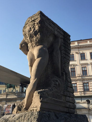 At Albertinaplatz, there is a series of sculptures located upon the grounds of an apartment building which collapsed during a WWII air raid over the city in 1945. A marker on the sight reveals that hundreds who sought shelter in the apartment cellar died during the bombing.