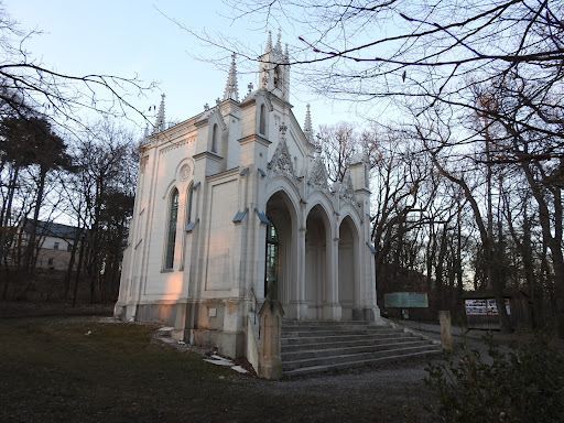 Read moreWunderhübsche Neugotische Kapelle im Wald hinter dem Baumkreis am Himmel. Leider wurde in den letzten Jahren wenig an der Fassade repariert, darum ist an vielen Stellen bereits Stuck und Putz abgefallen. Die Fenster sind verschmiert. Vor der Kapelle sind ausreichende Bänkchen um eine kurze...