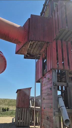 Read moreRead moreDie Idee ist sehr sehr nett. Und auch die Spielgeräte sind liebevoll gestaltet. schön mal sowas zu sehen! Leider fehlt was für die ganz Kleinen- mit zwei Kindern schwieriger finde ich--aufgrund des Schattenmangels kann man mit den Minis nur kurze Zeit im "Sand" spielen. Das Feuerwehrauto wird im Sommer von Schattensuchenden Begleitpersonen belagert, sodass die Kids kaum darauf spielen (war meine Erfahrung.) ein sehr toller Spielplatz für ältere Kinder (würde mal sagen, so ab Schultalter perfekt oder welche, die schon früh, sehr gut hoch hinauf klettern) um tolle Abendteuer zu erleben! Wie gesagt, trotzdem ein sehr netter Spielplatz. vorallem ist er gepflegt...