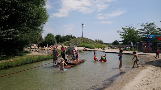 An absolute gem of a place! We have lived here for two years and never knew about this place until just recently. We are so happy to have discovered it. Our son enjoyed playing here for over three hours with his friend on a hot day and we will definitely go back. He especially enjoyed the raft that takes the children back and forth across the lake by their own power of pulling the rope. He also enjoyed the sand toys, provided by the Wasserspielplatz, to play in the sand and build castles and dig holes with. An absolute joy to watch him playing...