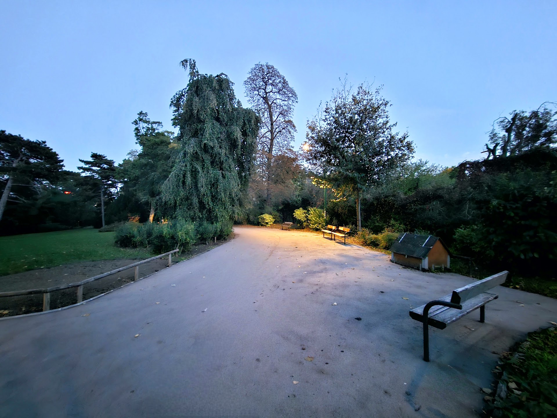 Very nice park, well kept. All the surfaces are green and plants and trees are well combined. It is beautiful, I like it during the autumn best. There are birds, and I also saw a little squirrel. The entire park is like a little gem situated into urban surroundings. It is actually like a small plato on a hill. So a short uphill walk (30-50 m) or stairs lead to the main part (e.g., from northeastern part). The main part offers a circular walk, approximatelly 800 steps long. Also nice for running. Highly recommend for relaxation...