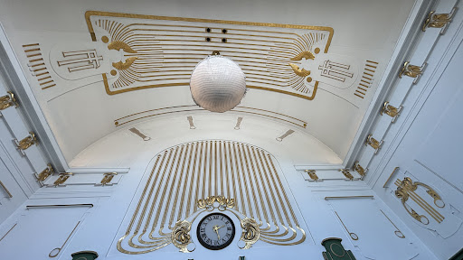 The two buildings are an architectural delight if you enjoy Art Nouveau and Secession style architecture. They include apple-green painted wood with metal decor and gold painted ornamentation typical of the surging Secession Movement of late 19th century Vienna. It is a very attractive exterior to view even if you are not a particular fan of this art and architectural movement from the turn of the 20th century.