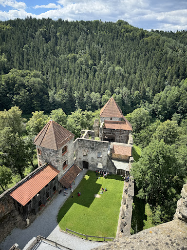 Wirklich toll, was die Gemeinde hier gemacht hat. Es gibt einen "Naschgarten". Dort kann man mit den Kindern alles mögliche pflücken und essen. Dann sind wunderschöne Rundbögen aufgestellt. Für Fotos wirklich traumhaft! Der Parklplatz ist gut ausgebaut und selbst ein Weg um einen Waldspaziergang angelegt. Die Burg ist leider immer zu. Früher konnte man dort rein und es war toll von innen! Die Aussicht ist atemberaubend und der Aufgang ( von der Stadt aus) sehr gut gepflegt und schön gemacht! Das Restaurant ist auch sehr schön! Die Bedienung ist im großen und ganzen echt nett. Das Licht ist schön und das Essen lecker. Ein Manko gibt es jedoch: Es gibt sehr wenig Auswahl an...