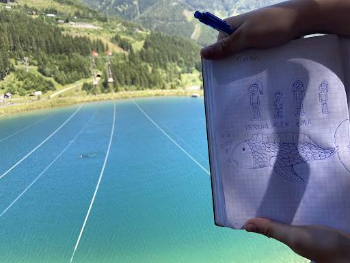 Fahrt über den See mit Zip-Line ohne Betreuung möglich! Dort angekommen wartet ein Weg über eine wackelige Holzleiter zur nächst höheren Plattform. Der Weg nach oben war va. für die Kinder ein Nervenkitzel. Das "Gefummel" des Halteleinenkarabiners über die Gummistopper, einhändig, auf einer wackeligen Leiter, in ca. 12 Meter Höhe--eher uncool. "Da musst du nur den Nippel durch die Lasche ziehen...dann schlug ich auf" :)