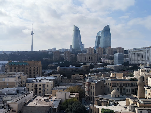 All efforts are compensated by the view at the top. There is a beautiful old town all around. Around it are new architectural dominants, the Flame Towers, skyscrapers of the embankment and the business center, and of course the Caspian Sea. Very beautiful. A cool sea wind...